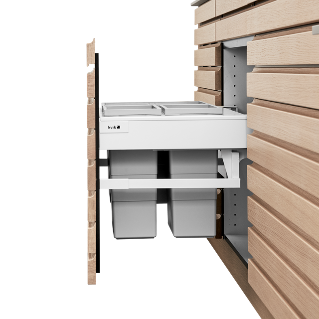 Ontdek het Drawer waste system Hailo van Kvik, een slimme oplossing voor afvalscheiding in de keuken. Dit systeem is ontworpen voor installatie in een lade en biedt een praktische en overzichtelijke manier om afval te scheiden. Met een breedte van 80 cm past het perfect in ruime keukenlades, waardoor het een ideale keuze is voor gezinnen die efficiëntie en netheid waarderen.