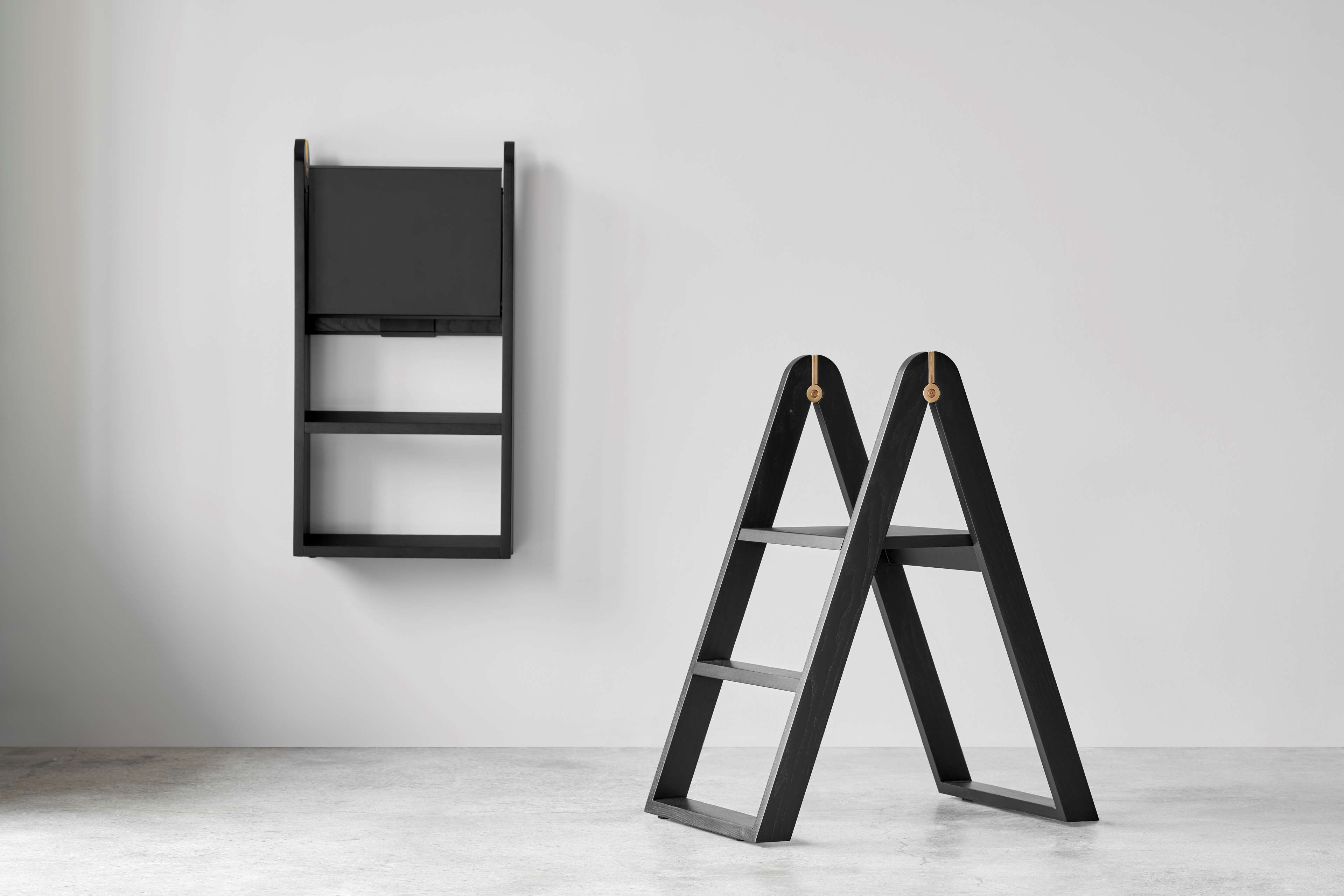 Ruimtebesparende innovatie: Wordt geleverd met een slanke beugel waarmee je Reech aan de muur kunt hangen of in een kast kunt opbergen, waardoor waardevolle vloeroppervlakte wordt bespaard. De bovenste trede verbergt de beugel en creëert een zwevend effect wanneer deze aan de muur is gemonteerd.