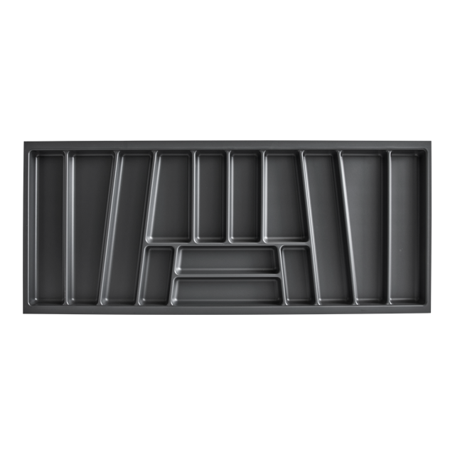 Onze bestekinzet in antraciet biedt een slimme en stijlvolle manier om je keukenlade te organiseren. Met zijn royale afmetingen van 120 x 50 cm biedt het voldoende ruimte voor al je bestek en keukengerei. De vele vakken zorgen voor een overzichtelijke indeling, zodat je altijd snel vindt wat je nodig hebt. Het duurzame kunststof materiaal is niet alleen robuust, maar ook eenvoudig te reinigen, wat bijdraagt aan een hygiënische keukenomgeving.